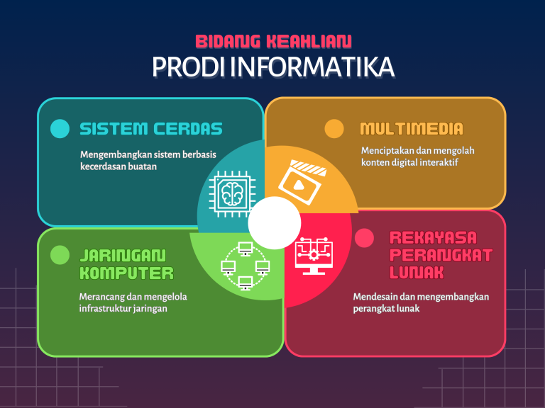 🎨 Multimedia Bidang Multimedia menekankan pada penciptaan, pengolahan, dan pengembangan konten digital interaktif. Mahasiswa mempelajari teknologi grafis komputer, animasi, desain antarmuka, audio-visual, serta pengembangan aplikasi multimedia berbasis web maupun mobile. Lulusan di bidang ini diarahkan agar mampu menghasilkan karya kreatif yang mendukung kebutuhan industri kreatif, pendidikan, hiburan, dan komunikasi digital.